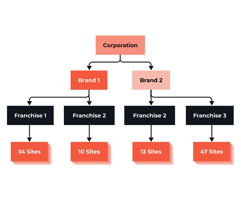 Self service for large enterprise customers looks a little different when multiple users at all levels in an organization need access to the right information. Now, add that to the complexities of franchise ownership and agreements that span multiple brands and corporations and you have a hot mess of interconnected offices, stores and restaurants.